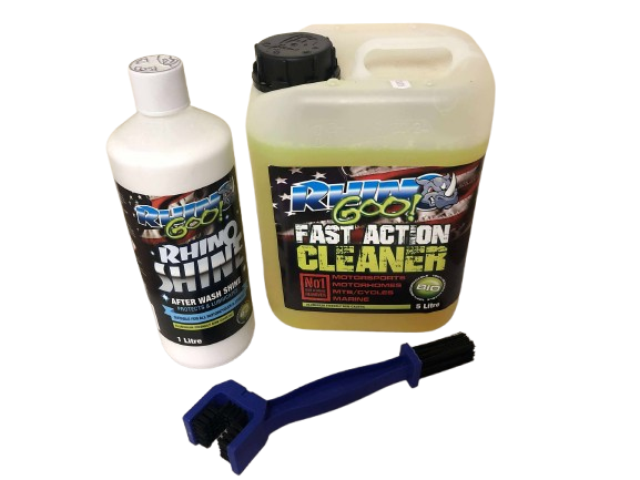 RHINO GOO ESSENTIAL BIKE CLEANING PACK 5LTR CLEANER + 1LTR SHINE + BRUSH